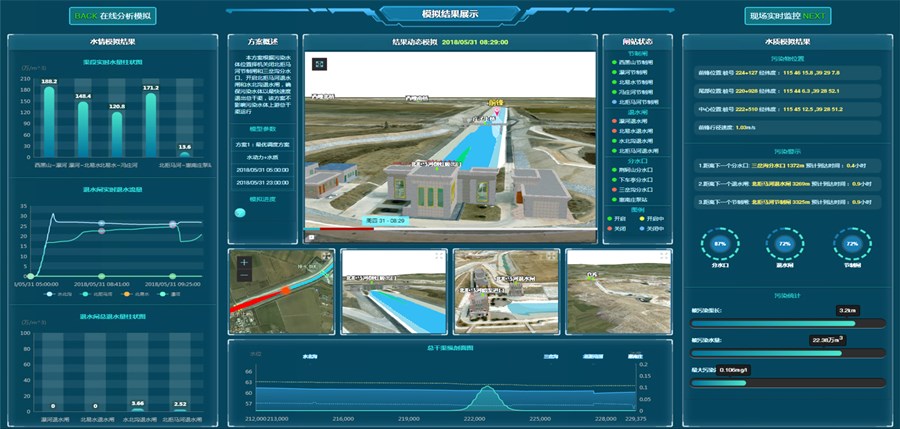水質突發事件應急處置決策支持系統(基于BIM模型結合GIS、實景模型、智能語音技術等實現水質污染模型的在線構建與計算,并可實現污染物行進位置的實時播報)