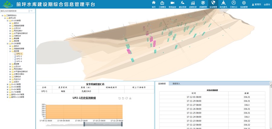 前坪水庫工程(基于BIM模型搭建建設期管理系統,實現大壩安全監測信息實時查詢與管理。)