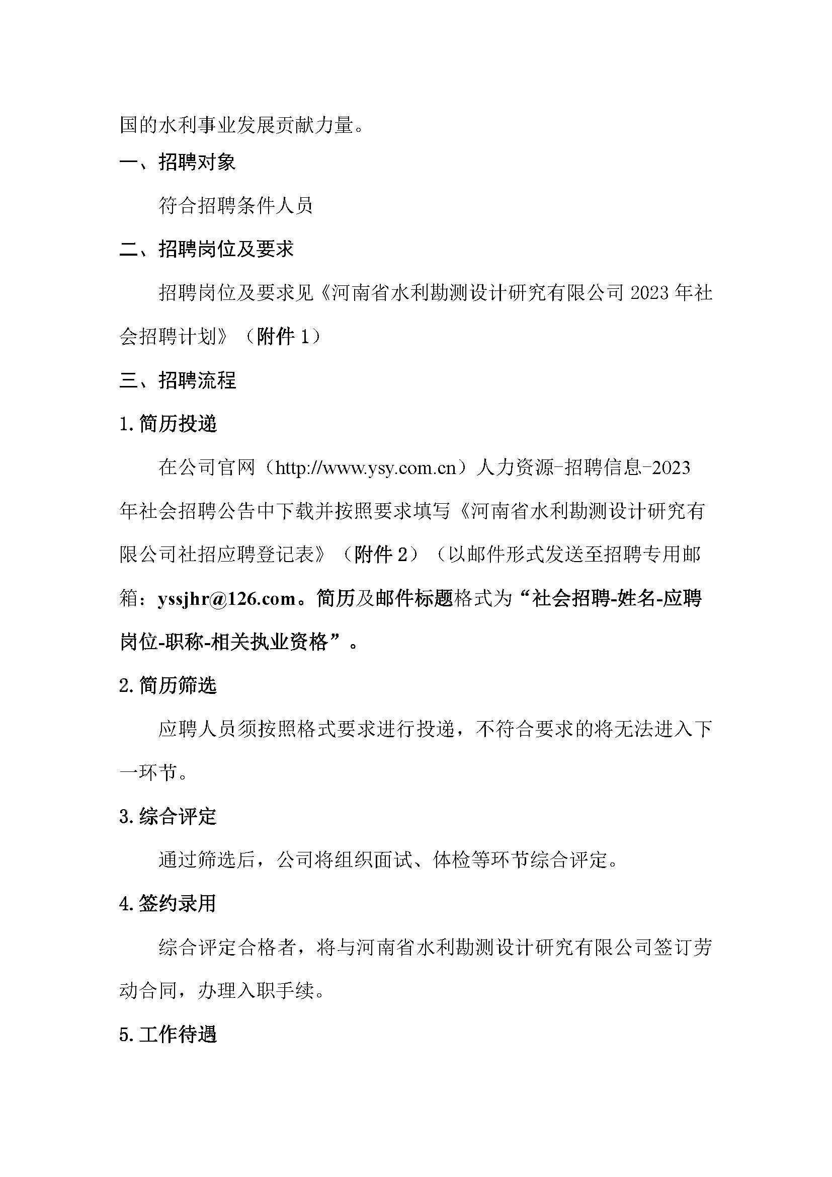 河南省水利勘測設計研究有限公司2023年社會招聘公告