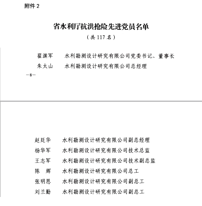 公司黨委及8名黨員同志受到省水利廳黨組通報表揚