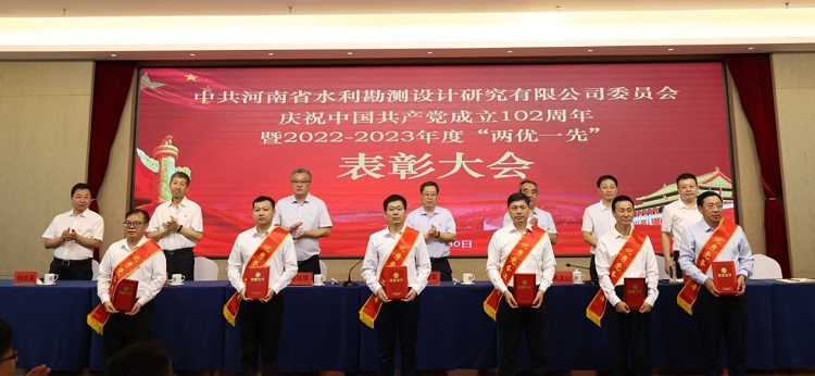 6月30日上午,中共河南省水利勘測設計研究有限公司委員會隆重舉行慶祝中國共產黨成立102周年暨2022-2023年度“兩優一先”表彰大會,熱烈慶祝偉大的中國共產黨102歲華誕,系統總結公司兩年來黨建工作,表彰2022-2023年度優秀共產黨員、優秀黨務工作者和先進黨支部,動員全體共產黨員向先進學習、向模范看齊,進一步激發廣大黨員群眾干事創業動力和熱情,共同為豫水設計的美好明天團結奮斗。會議由公司黨委委員、總經理朱太山主持。