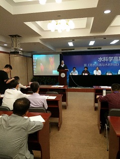 北京師范大學(xué)水科學(xué)研究院徐宗學(xué)教授、河海大學(xué)水文水資源學(xué)院束龍倉教授、中國水利水電科學(xué)研究院流域水循環(huán)模擬與調(diào)控國家重點實驗室雷曉輝博士、清華大學(xué)水利系王忠靜教授、中國地質(zhì)科學(xué)院巖溶地質(zhì)研究所張發(fā)旺研究員、蘭州大學(xué)旱區(qū)流域科學(xué)與水資源研究中心賀纏生教授分別就城市洪澇災(zāi)害、地下水科學(xué)研究典型案例、南水北調(diào)中線水量水質(zhì)聯(lián)合調(diào)度與運(yùn)行控制、水權(quán)的前世今生、中國北方巖溶地下水功能及其調(diào)查研究方向、流域水文研究進(jìn)展等方面進(jìn)行了報告。公司董事長翟淵軍主持了水利部景區(qū)辦陳吉虎副主任、中國水利學(xué)會水力學(xué)專業(yè)委員李貴寶教授關(guān)于生態(tài)文明視域下做好水利風(fēng)景區(qū)的幾點思考,河長制的現(xiàn)狀、問題及對策的報告。幾位院士與專家的發(fā)言及報告均為當(dāng)今較前沿的水科學(xué)研究內(nèi)容,語言詼諧幽默、內(nèi)容令人深思。學(xué)術(shù)報告后,翟淵軍董事長出席了編輯委員會工作會議,就目前期刊現(xiàn)狀及發(fā)展進(jìn)行了討論。