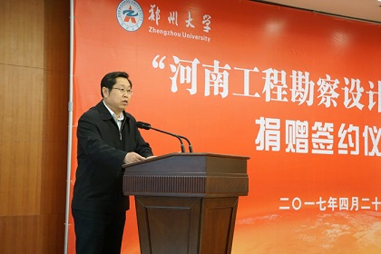 4月20日,“河南工程勘察設計”獎學金捐贈簽約儀式在鄭州大學校園舉行。鄭州大學副校長宋毛平代表鄭州大學致辭,介紹了鄭州大學的發展歷程和鄭州大學教育發展基金會的現狀,對協會所做工作表示感謝,對捐贈單位支持教育事業、熱心奉獻社會的卓識善舉表示敬意。