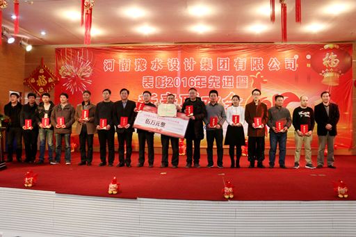 接著,集團公司副總經理何杰宣讀了關于表彰2016年崗位標兵、優秀管理者、優秀團隊以及“總經理特別貢獻獎”的決定。工程設計一院被評為優秀團隊,苗紅昌、薛應科被評為優秀管理者,朱智偉、劉洪飛、盧瑕、曲曉寧、嚴勇被評為年度崗位標兵,耿昕、李雪艷、李小舟等40名同志被評為季度崗位標兵,2016年南水北調搶險設計小組和數字工程中心創新團隊榮膺總經理特別貢獻獎。在大家的熱烈掌聲中,與會領導先后上臺為獲獎者頒發獲獎證書、獎金,并與獲獎者合影留念。