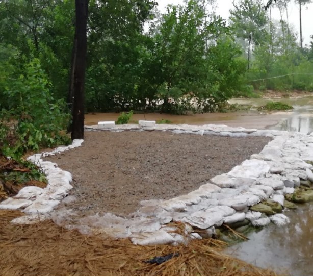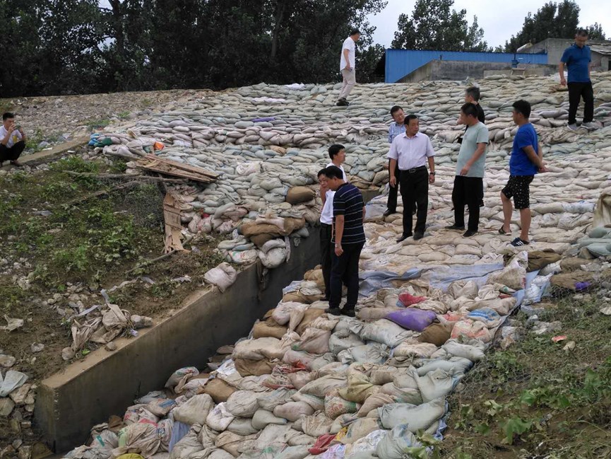 公司技術(shù)專家指導(dǎo)唐河縣珍珠河桐二村附近堤防險情處理