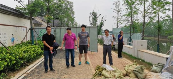 技術(shù)副總監(jiān)田耕(圖中左二)現(xiàn)場指導(dǎo)渦河堤頂排水工程施工