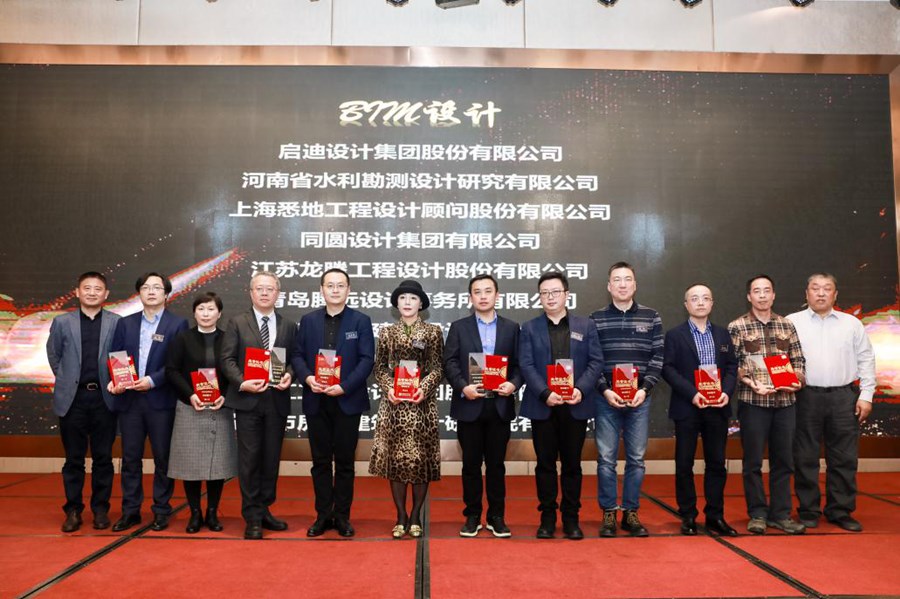 晚會由張藝、劉柯主持。首先,由豫水設計公司董事長翟淵軍致歡迎辭。接著,分會秘書長李武英向大會作年度工作報告、財務報告,并經參會理事共同審議通過兩項提案。隨后,現場揭曉2020十大民營工程設計企業及二十個專業領先企業并頒獎。豫水設計公司四項專業領先排名榮膺前十,分別是BIM設計第2名、工程總承包第5名、風景園林設計第8名、項目管理第8名。