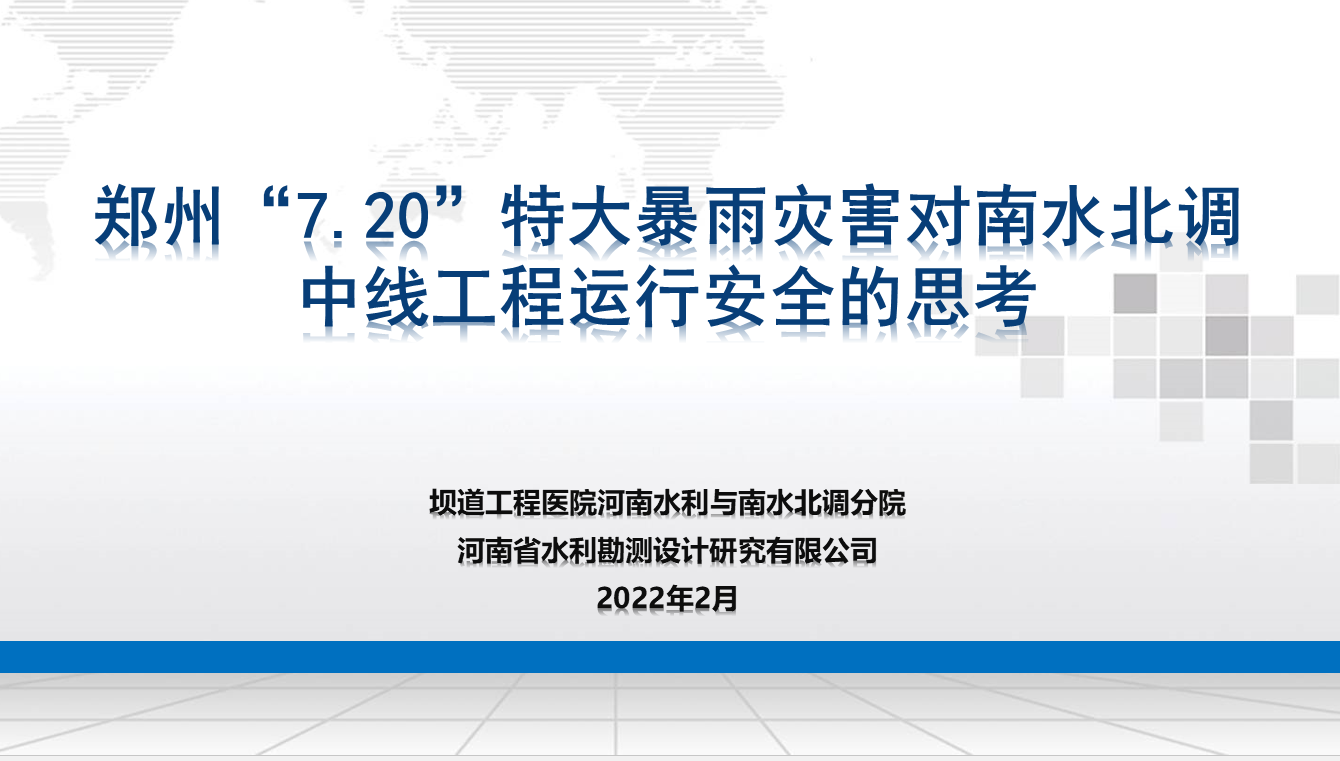 河南省水利勘測設(shè)計(jì)研究有限公司董事長翟淵軍,《鄭州“7.20”特大暴雨災(zāi)害對南水北調(diào)中線工程運(yùn)行安全的思考》;