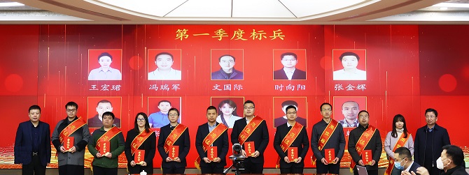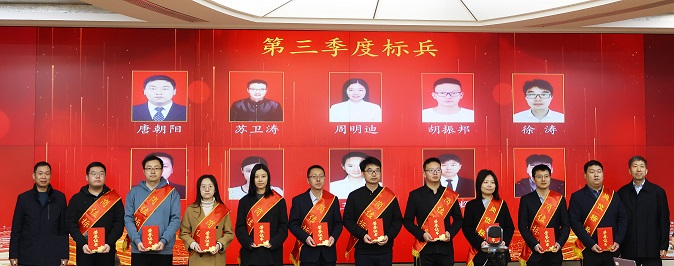 公司總經理朱太山宣讀《關于表彰2022年度優秀團隊、總經理特別貢獻獎、優秀管理者以及崗位標兵的決定》。2022年度共評選出優秀團隊1個、總經理特別貢獻獎1個、優秀管理者2名、年度崗位標兵6名、季度崗位標兵39名。與會公司領導為獲得表彰的團隊和個人頒發證書,并合影留念。