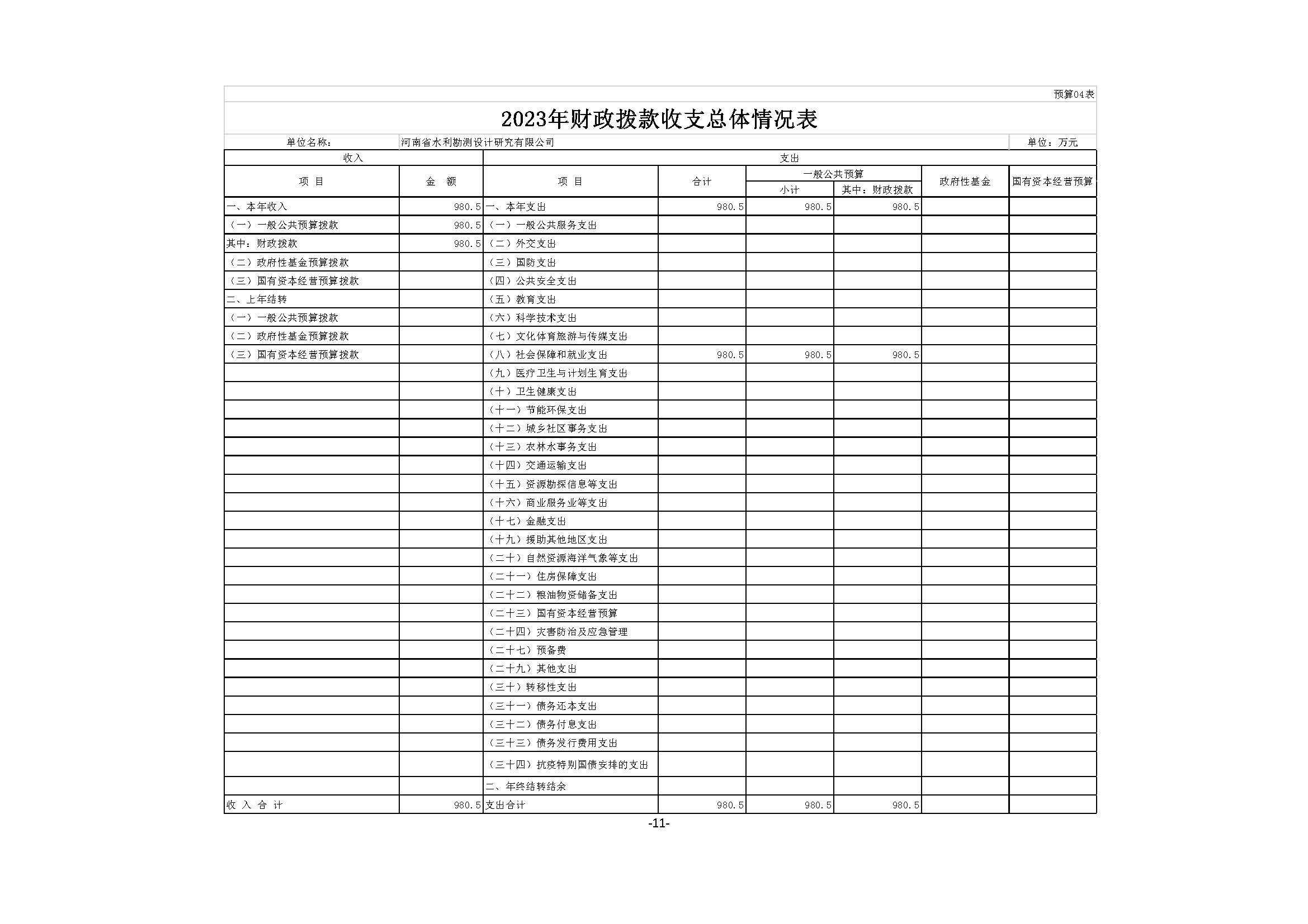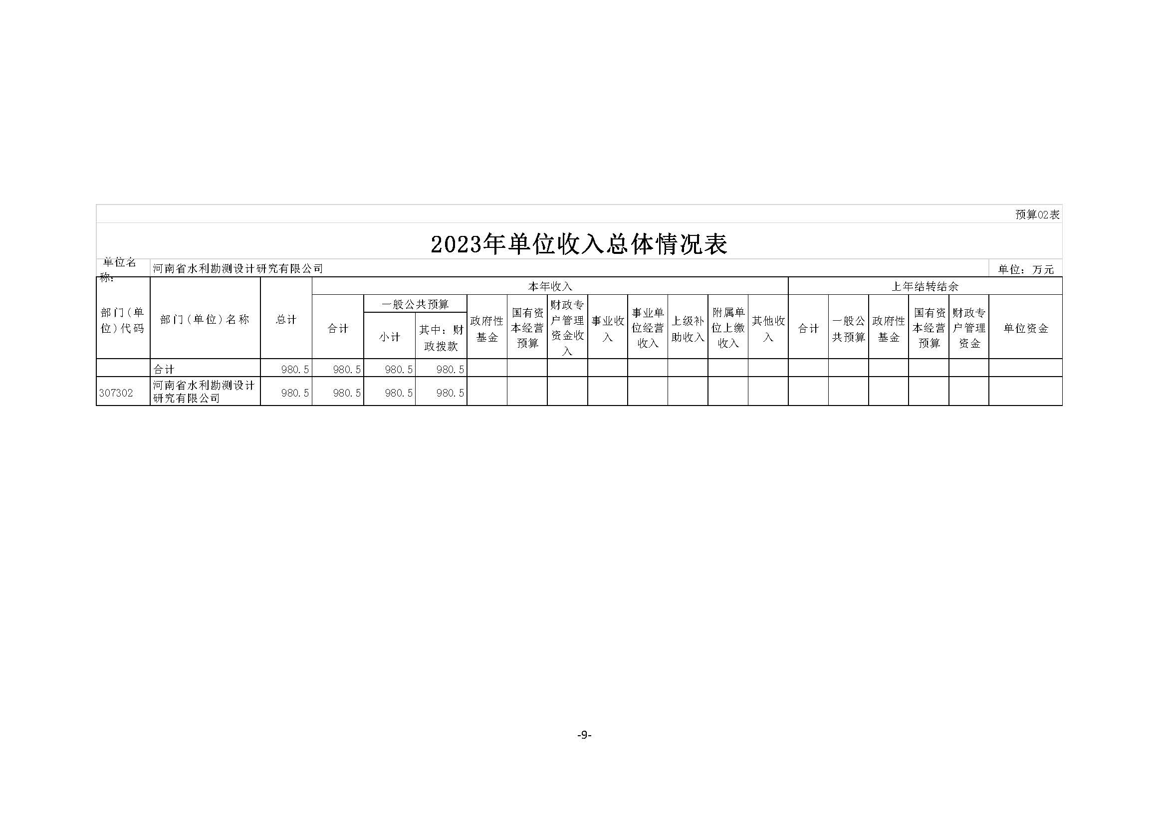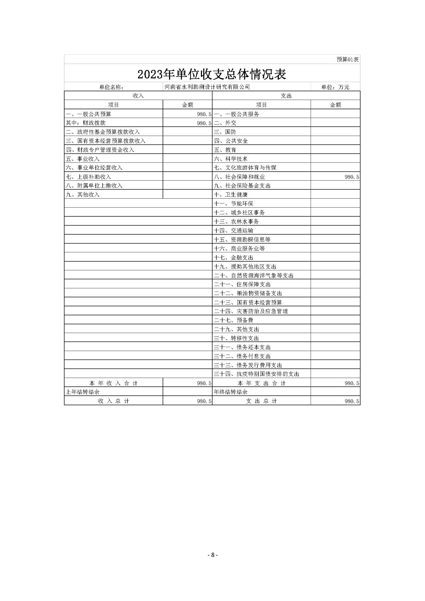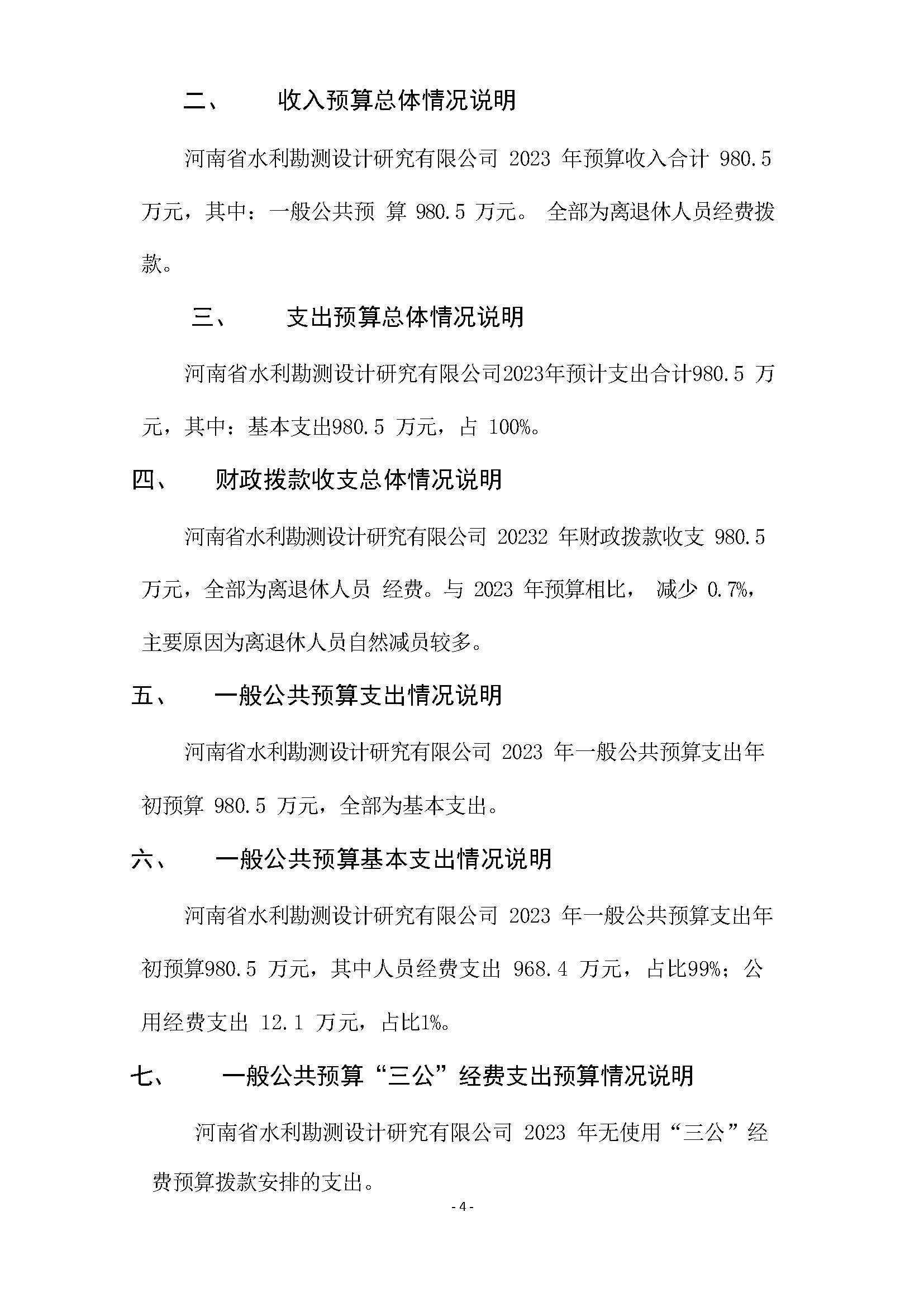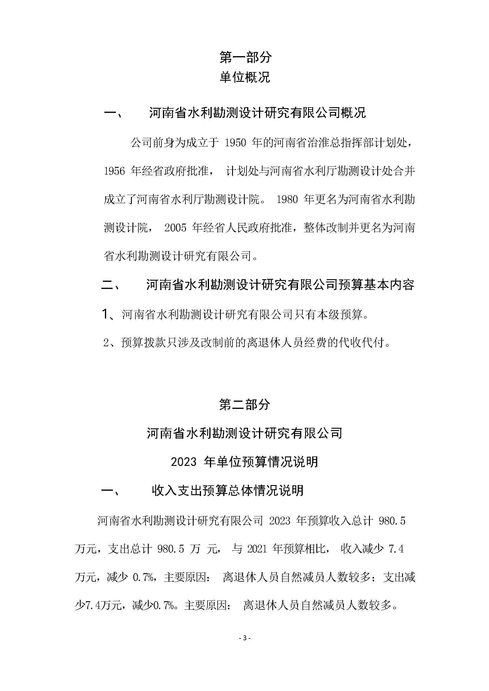 河南省水利勘測設(shè)計(jì)研究有限公司2023預(yù)算公開