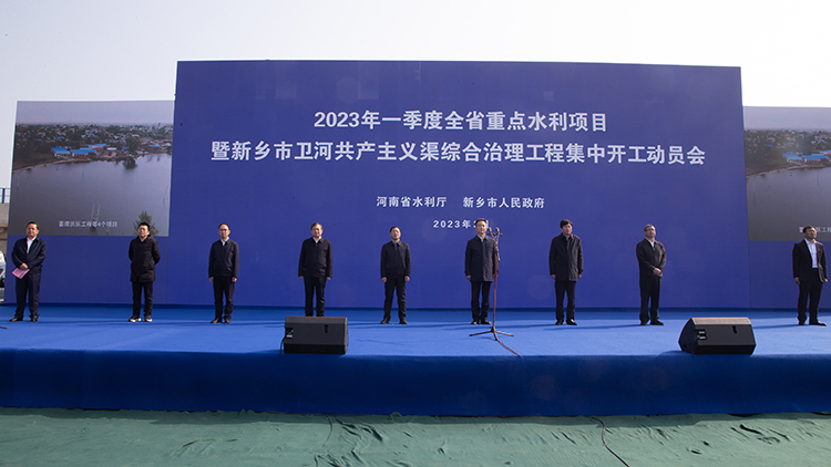 3月21日,2023年一季度全省重點水利項目暨新鄉市衛河共產主義渠綜合治理工程開工動員會在新鄉衛輝召開。省政府副省長楊青玖出席開工儀式并下達開工令。省水利廳廳長申季維、新鄉市委書記李衛東、河南水投集團黨委書記、董事長楊繼成出席,省水利廳副廳長祝云憲主持。