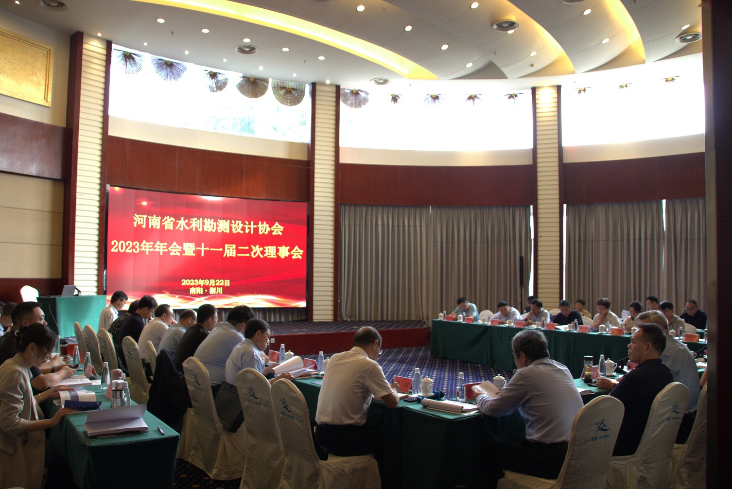 2023年9月22日,河南省水利勘測(cè)設(shè)計(jì)協(xié)會(huì)2023年年會(huì)暨十一屆二次理事(擴(kuò)大)會(huì)議在南陽(yáng)市淅川縣召開,18個(gè)理事單位到會(huì),會(huì)員代表50余人參加會(huì)議,會(huì)議由趙健倉(cāng)副理事長(zhǎng)主持。南陽(yáng)市水利建筑勘測(cè)設(shè)計(jì)院賈大周院長(zhǎng)發(fā)表了熱情洋溢的歡迎辭,河南省水利學(xué)會(huì)理事長(zhǎng)王憲章、南陽(yáng)市水利局總工程師曹道立到會(huì)并致辭。