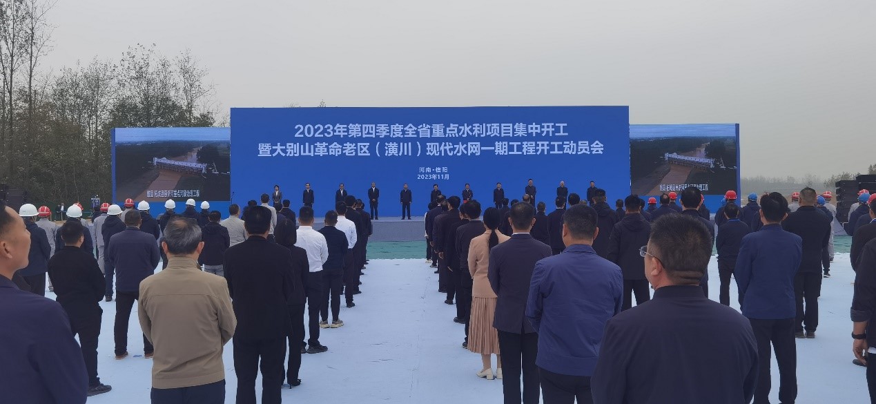 11月4日上午,2023年第四季度河南省重點水利項目集中開工暨大別山革命老區(潢川)現代水網一期工程開工動員會在信陽市潢川縣舉行。儀式由河南省人民政府副秘書長王曉偉主持,信陽市人民政府市長陳志偉、河南水投集團董事長楊繼成、河南省水利廳廳長申季維先后致辭,河南省人民政府副省長孫運鋒下達項目開工令。