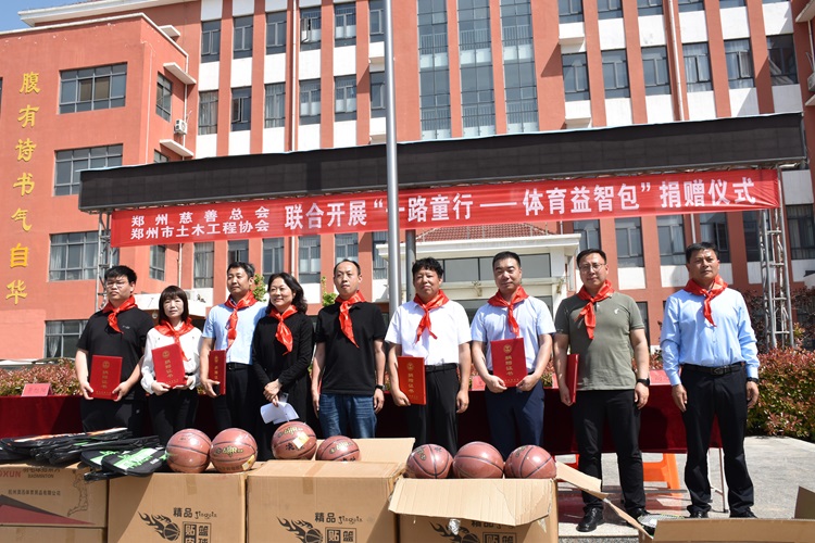 4月26日,鄭州市慈善總會、鄭州市土木工程協會在登封市唐莊鎮第二小學聯合開展“一路同行——體育益智包”捐贈儀式。鄭州市慈善總會項目部部長郭偉,登封市唐莊鎮副鎮長李泉貴,豫水設計公司副總經理劉國龍和各受邀企業代表參加儀式。