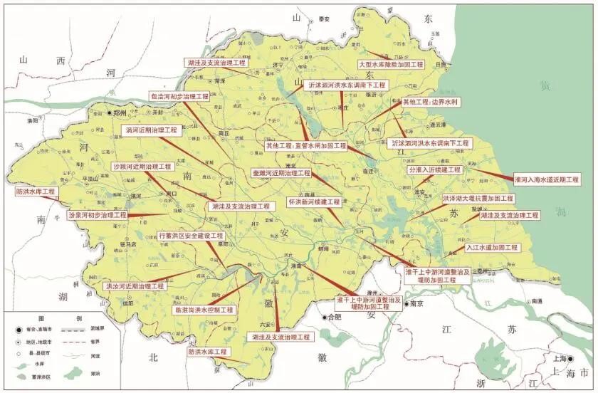 淮河流域防洪除澇標準顯著提高,淮河干流上游防洪標準超10年一遇;中游主要防洪保護區、重要城市和下游洪澤湖大堤防洪標準已達到100年一遇;重要支流及中小河流的防洪標準已基本提高到10—20年一遇以上;沂沭泗河中下游重要防洪保護區的總體防洪標準基本上達到50年一遇;在行蓄洪區充分運用的情況下,可防御新中國成立以來發生的流域性最大洪水。