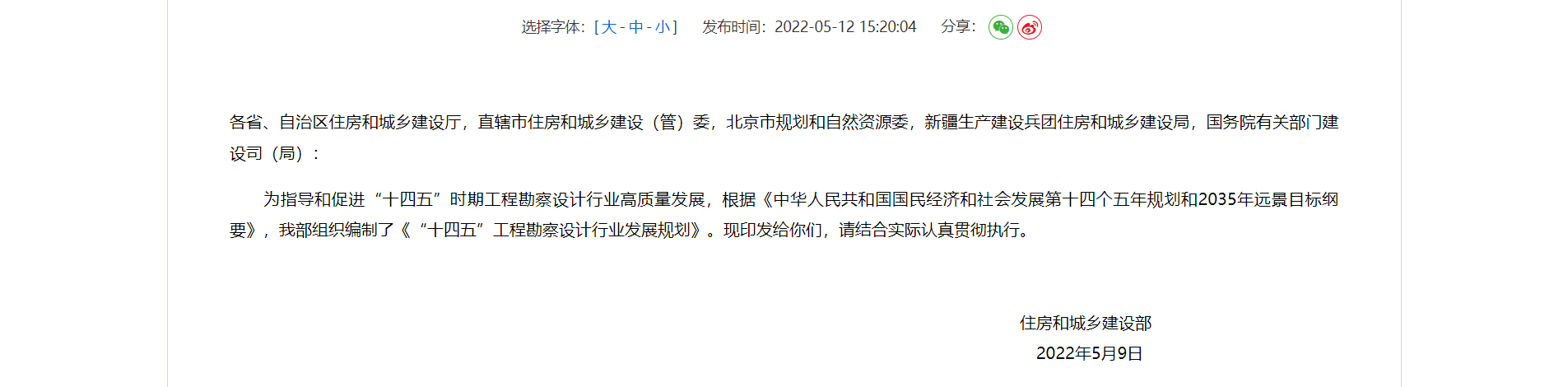 為指導和促進“十四五”時期工程勘察設計行業(yè)高質(zhì)量發(fā)展,住房和城鄉(xiāng)建設部近日印發(fā)了《“十四五”工程勘察設計行業(yè)發(fā)展規(guī)劃》。