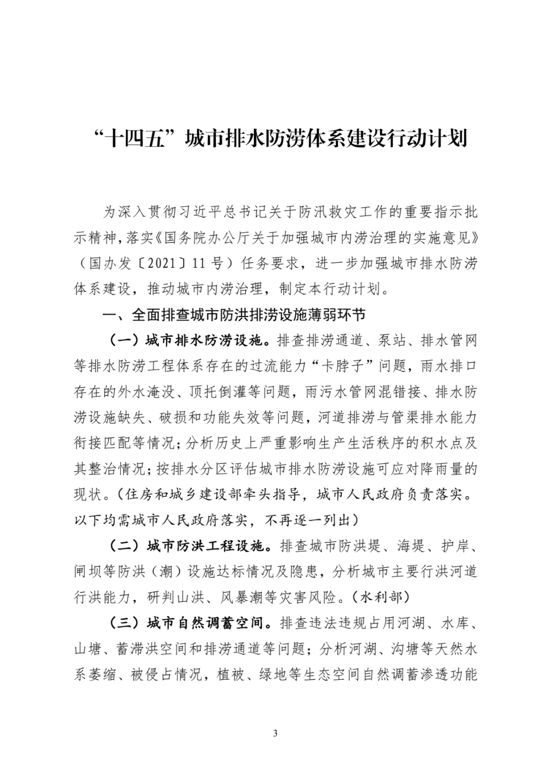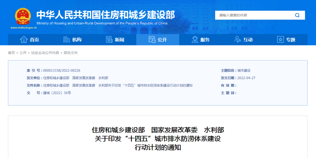 關于印發“十四五”排水防澇體系建設行動計劃的通知