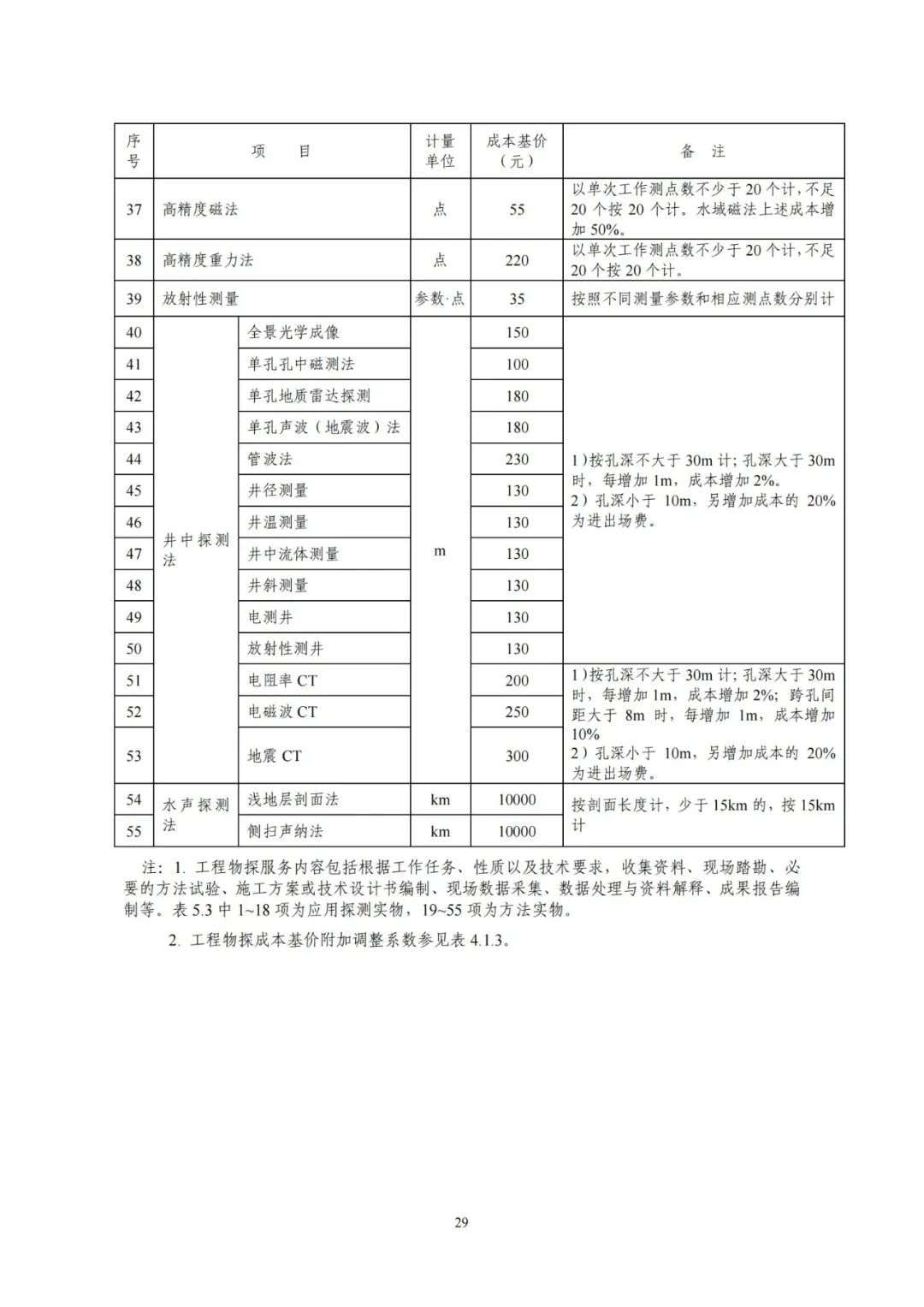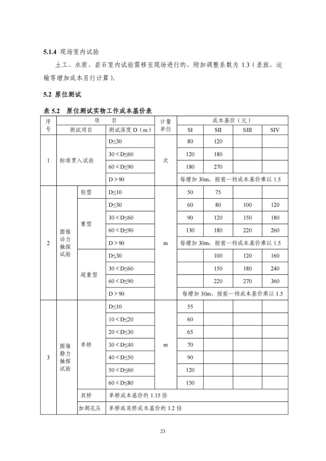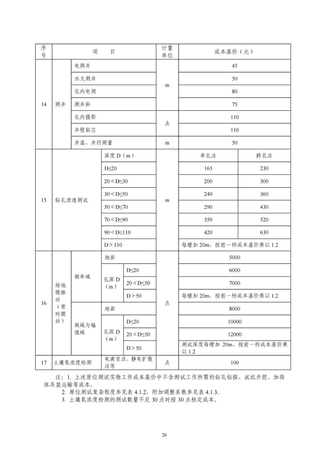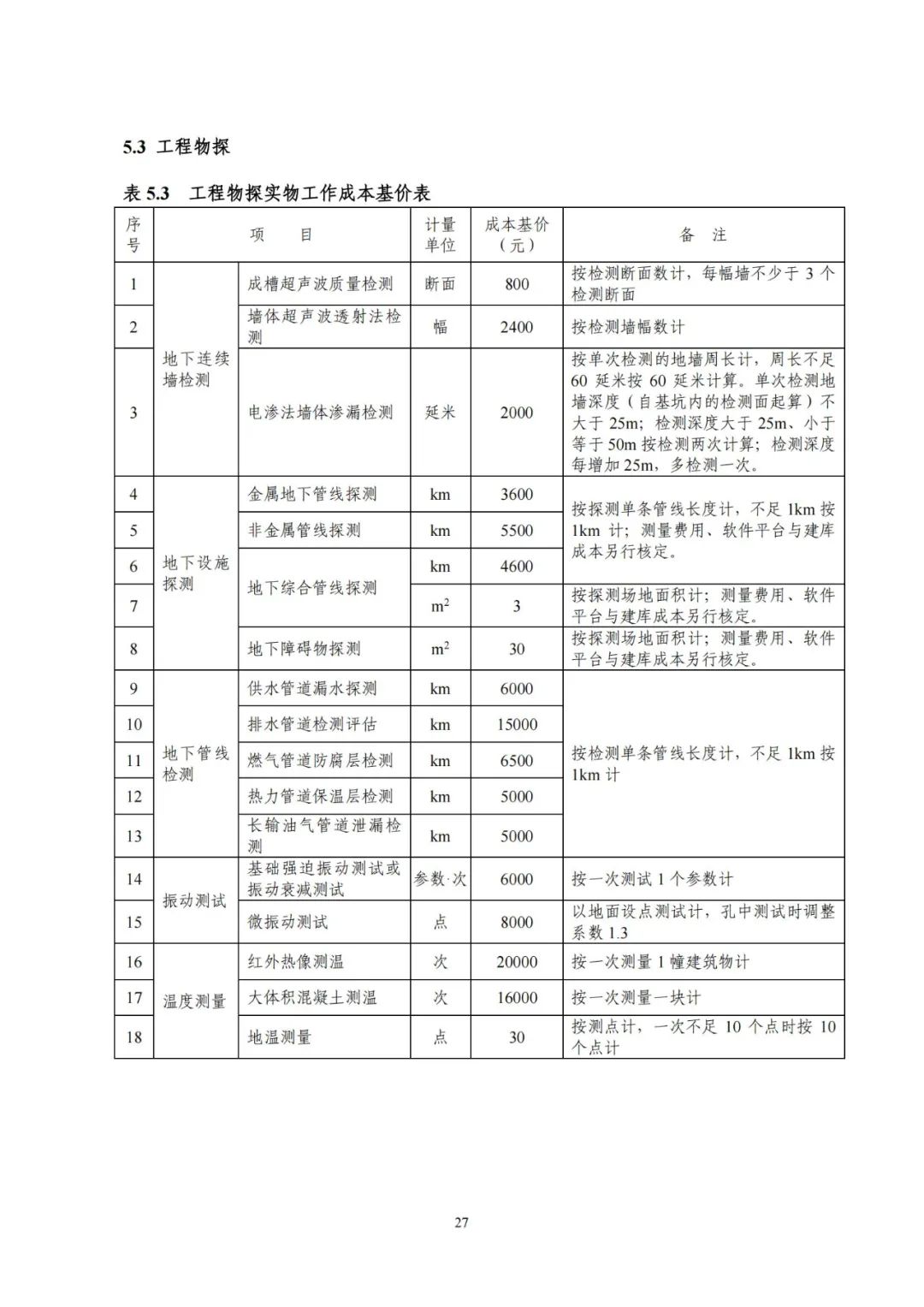 《要素信息》分為八章,相關成本測算分為工程費法(其包含巖土工程勘察、巖土工程勘察咨詢與監理、巖土工程設計和專業工程咨詢)、實物工作量法(其包含工程地質測繪與遙感地質解譯、巖土工程勘探與取樣、巖土工程試驗/檢測與監測、工程測量、水文地質勘察)及人工日法三類。除傳統的巖土工程試驗、測試和工程測量項目外,實物工作成本包括了土的易溶鹽及導熱系數等室內試驗、多功能數字式孔壓靜力觸探試驗、溫度測量等工程物探、海洋和內陸水域測量、無人機航空攝影測量、地面三維激光掃描測量、規劃測量等以新技術方法為主的專業技術服務項目。